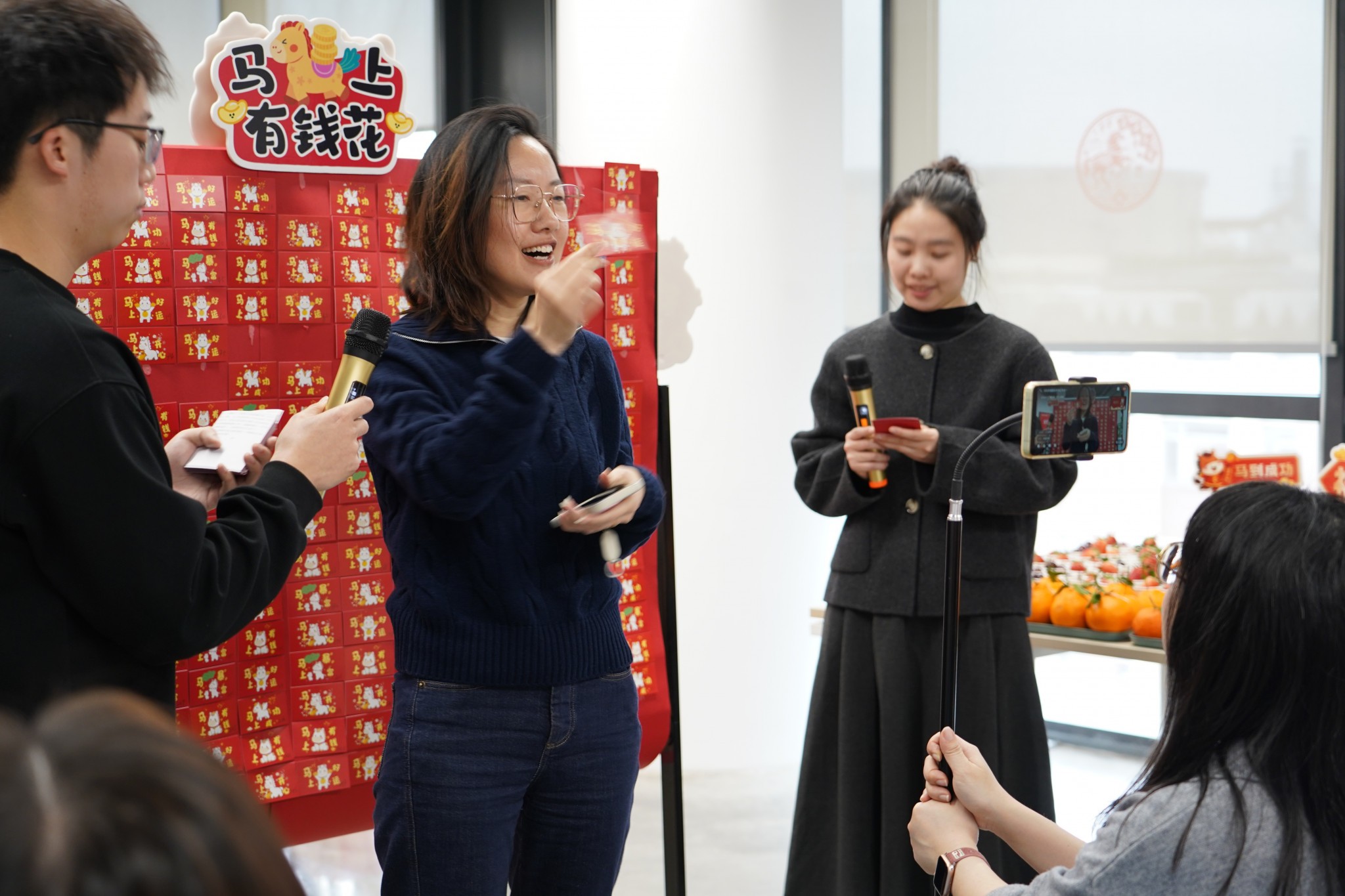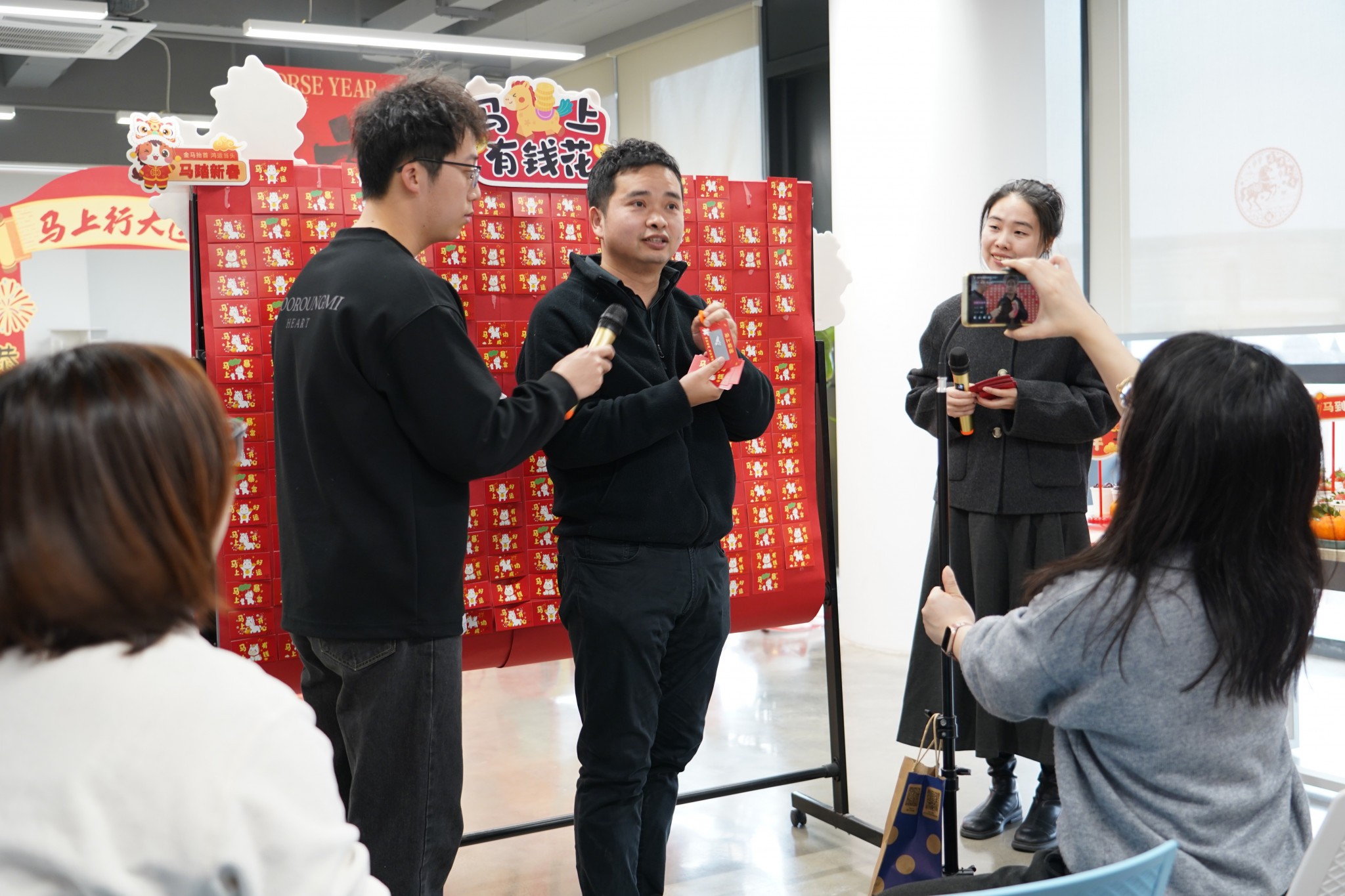董事长讲话结束后,年会相继开展趣味游戏、幸运抽奖等环节,大家踊跃参与、默契配合,现场欢声笑语不断,氛围热烈融洽。